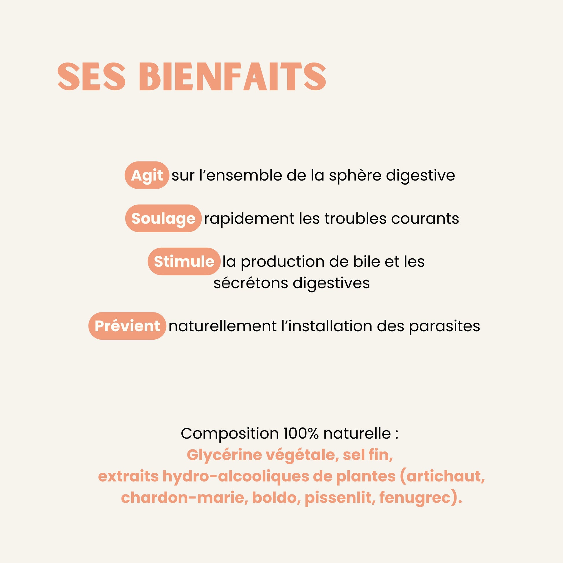 • Facilite la digestion et stimule la sécrétion de bile