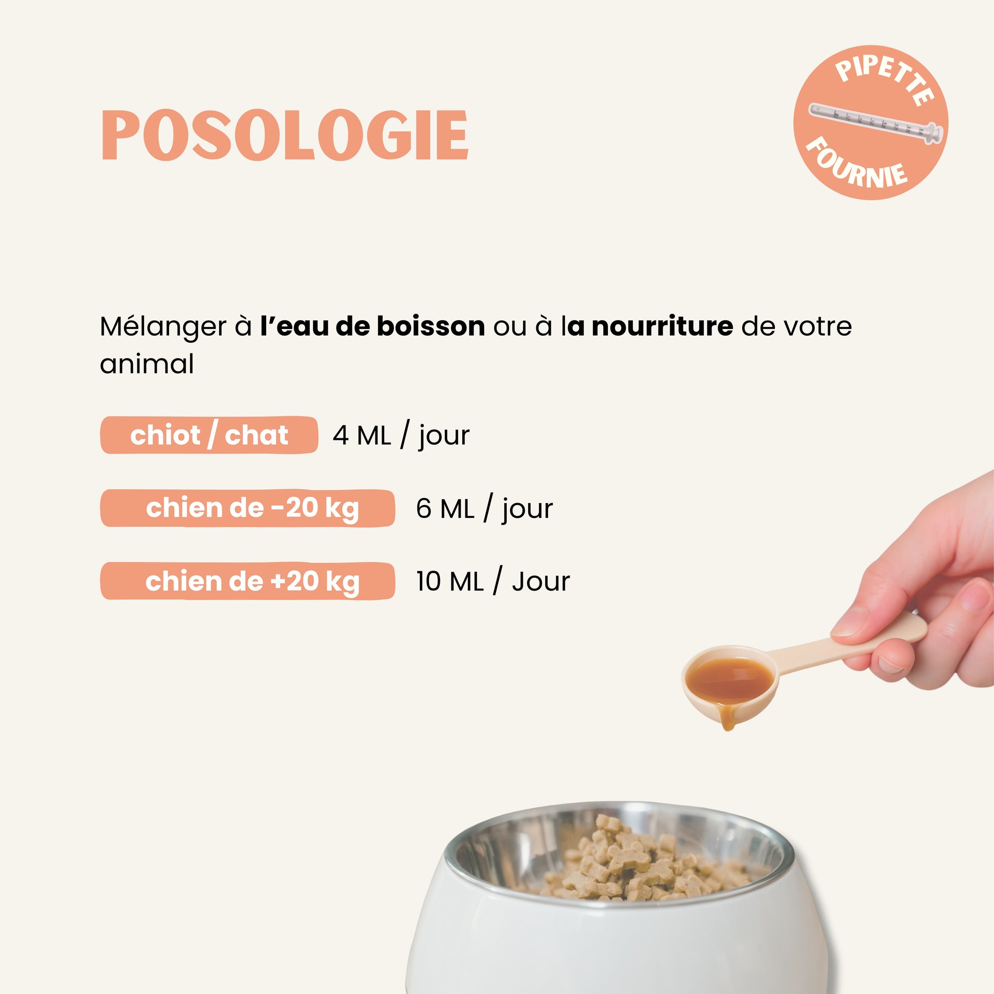 • Chats : 4 ml / jour