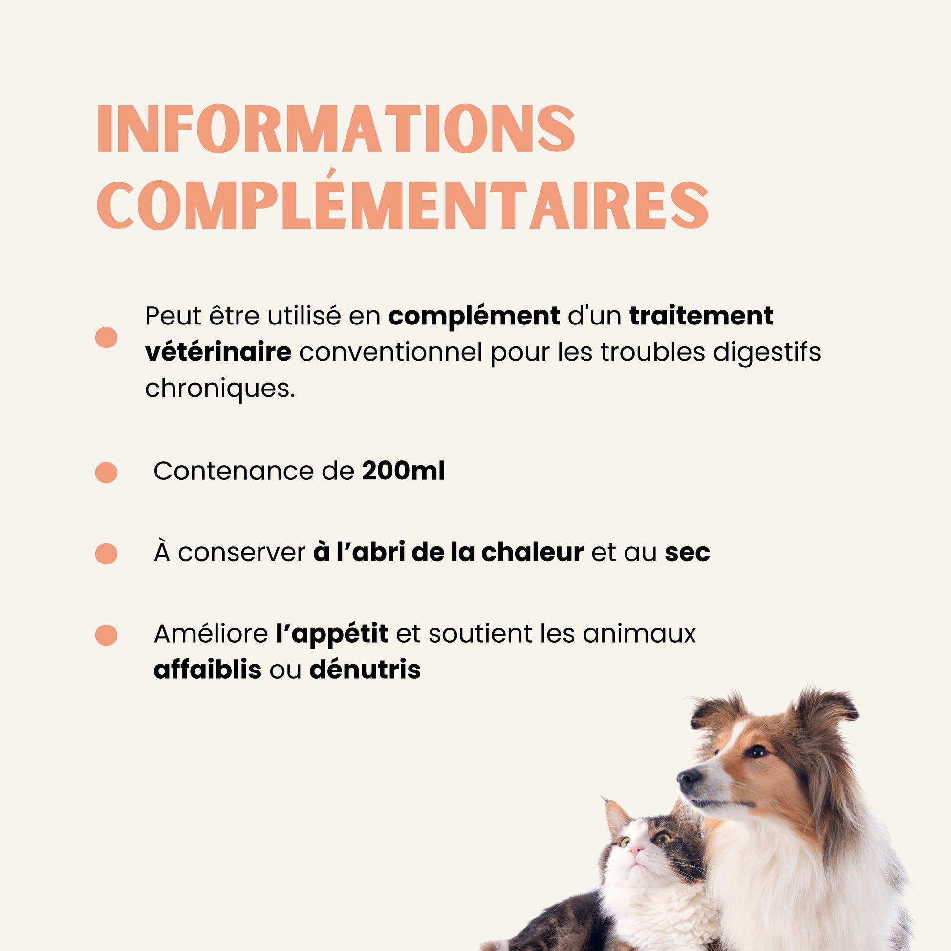 • Améliore l’appétit et soutient les animaux affaiblis ou dénutris
