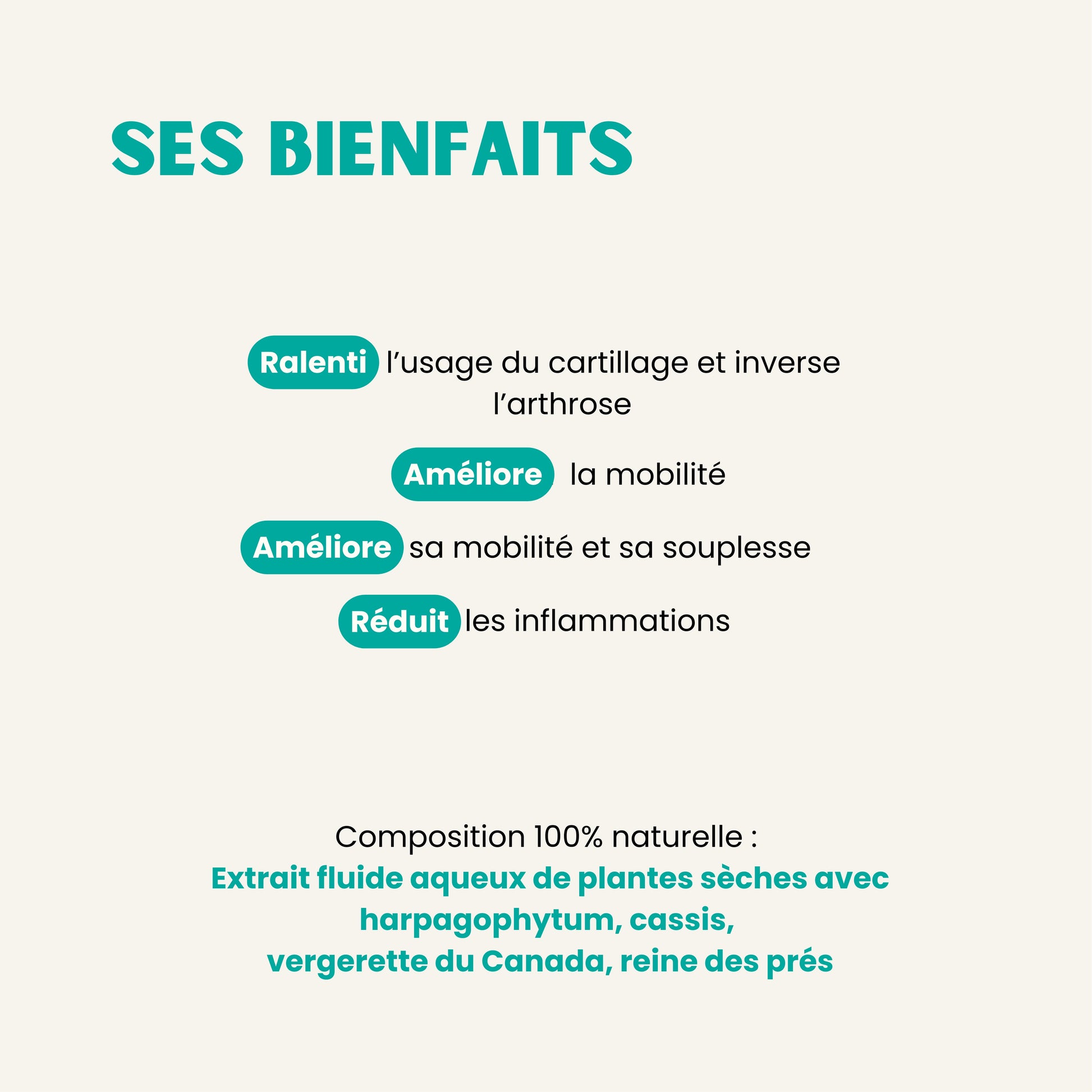 L’Harpagophytum (griffe du diable) apporte un soutien anti-inflammatoire naturel et contribue à atténuer les douleurs et raideurs articulaires.