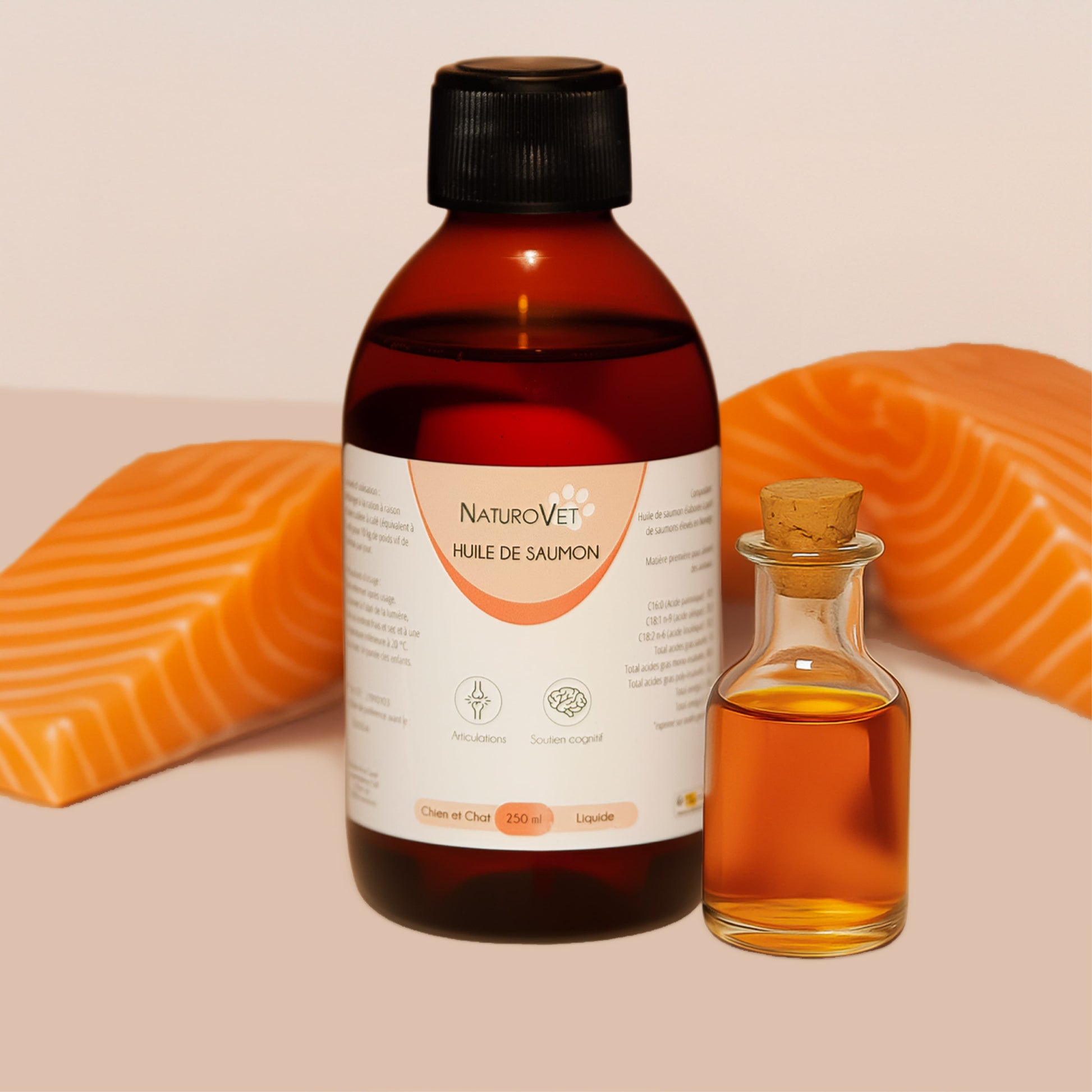 🐟 Offrez à votre compagnon un poil de star, des articulations souples et un cœur en pleine forme grâce à notre huile de saumon 100 % naturelle.