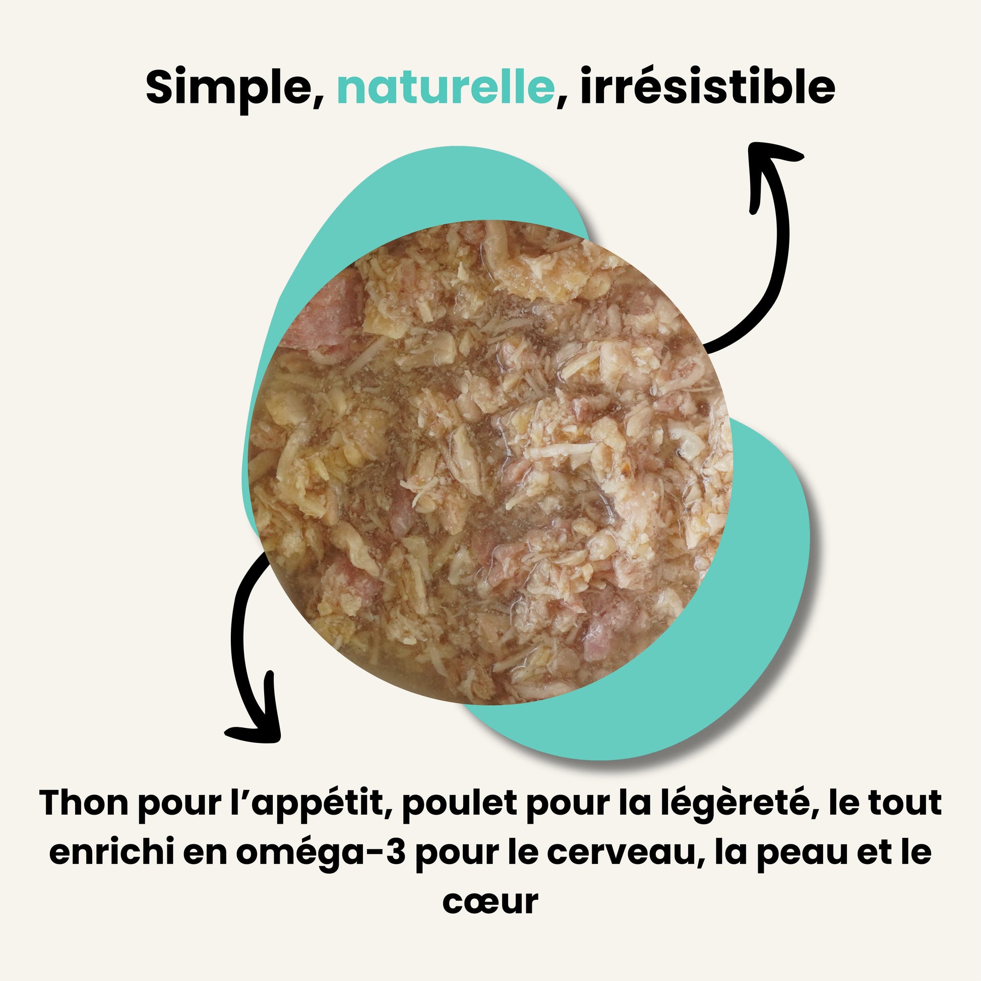 À base de thon, de poulet et de poisson blanc, cette pâtée allie goût irrésistible et bienfaits nutritionnels.