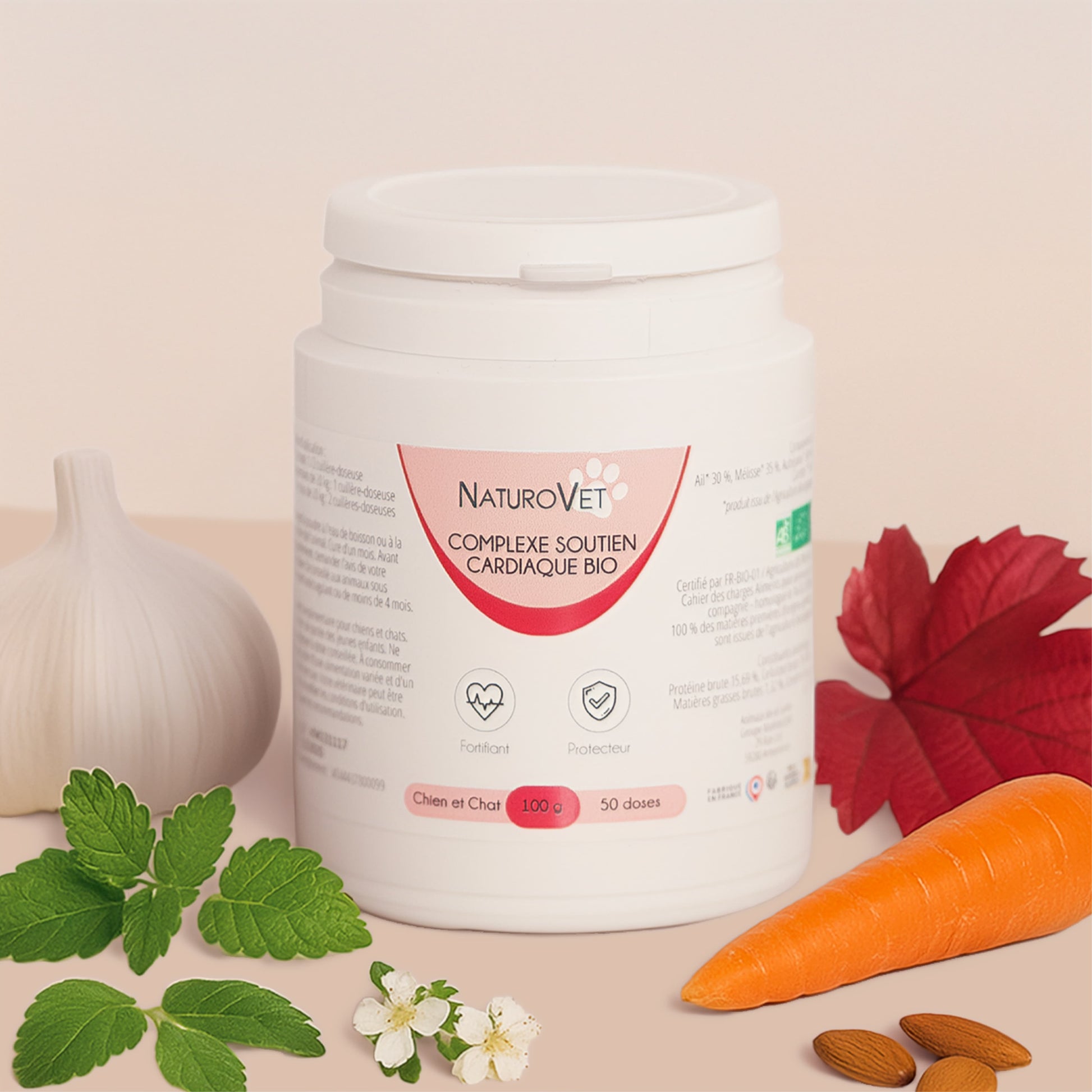 Le Complexe Soutien Cardiaque est un mélange de plantes 100 % bio qui aide à protéger le cœur et les vaisseaux sanguins de votre animal.