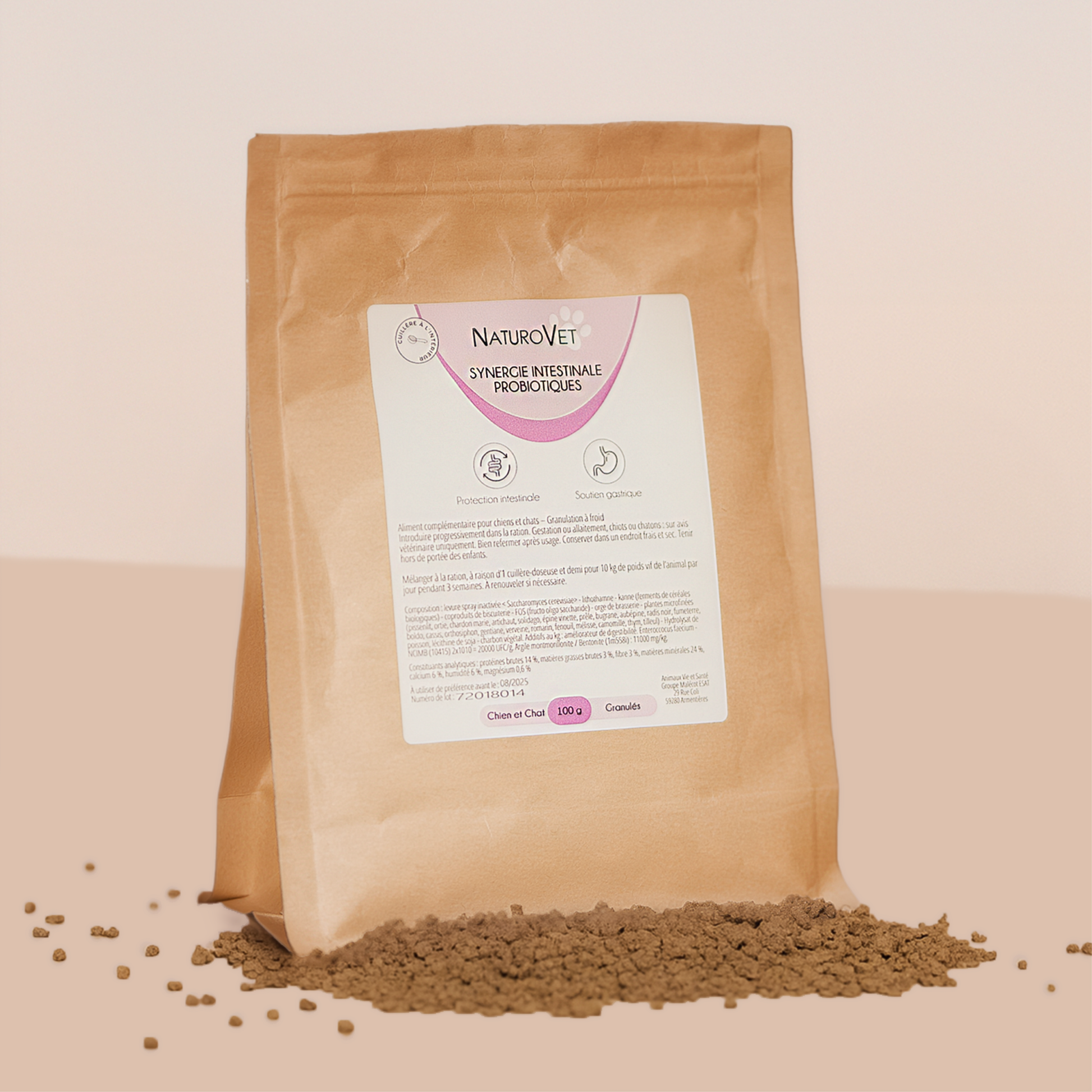 - Enterococcus faecium – Probiotique vivant, équilibre le microbiote et renforce les défenses naturelles.