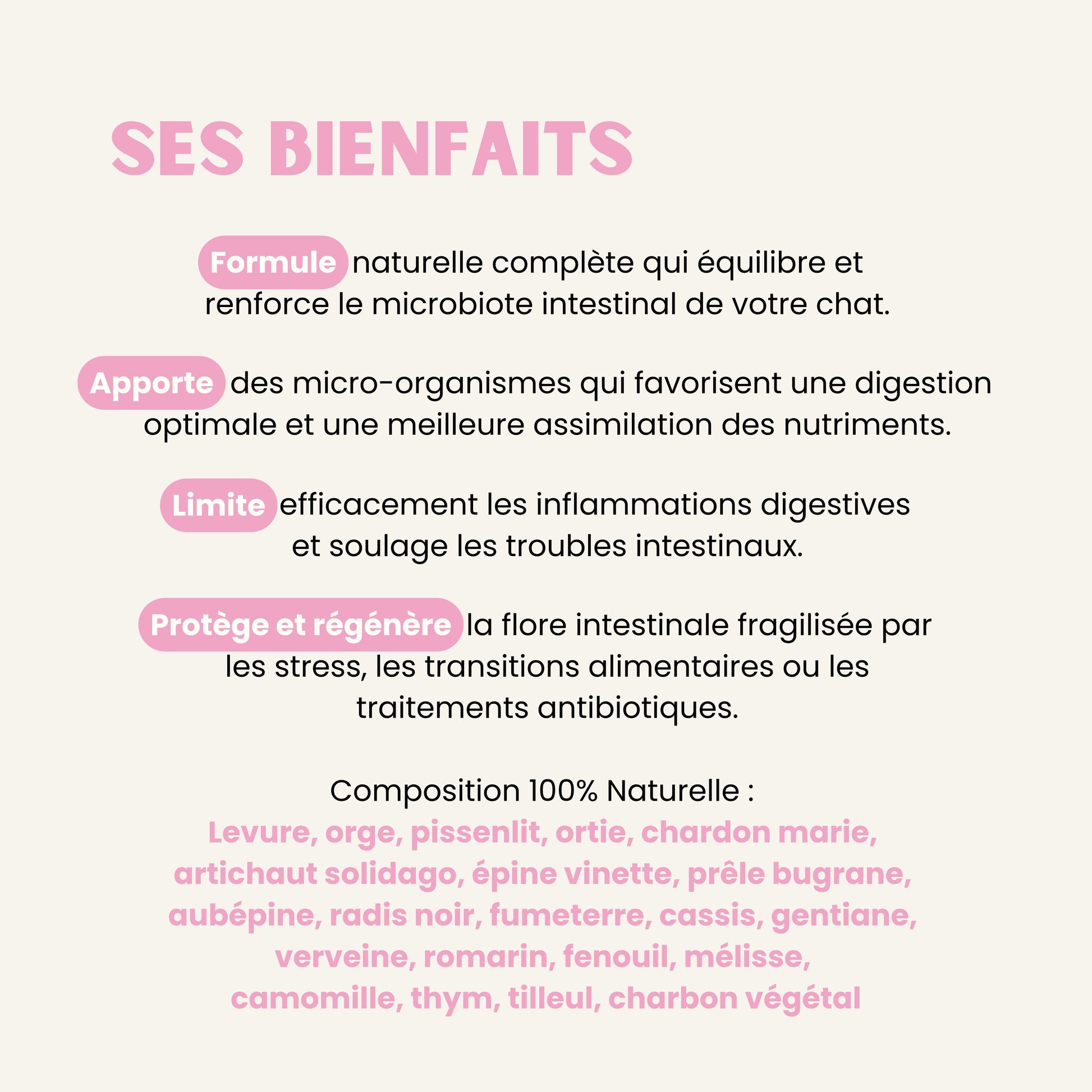 Formulée à partir de plantes microfinées, de probiotiques vivants et d’ingrédients reconnus pour leurs propriétés digestives, elle :