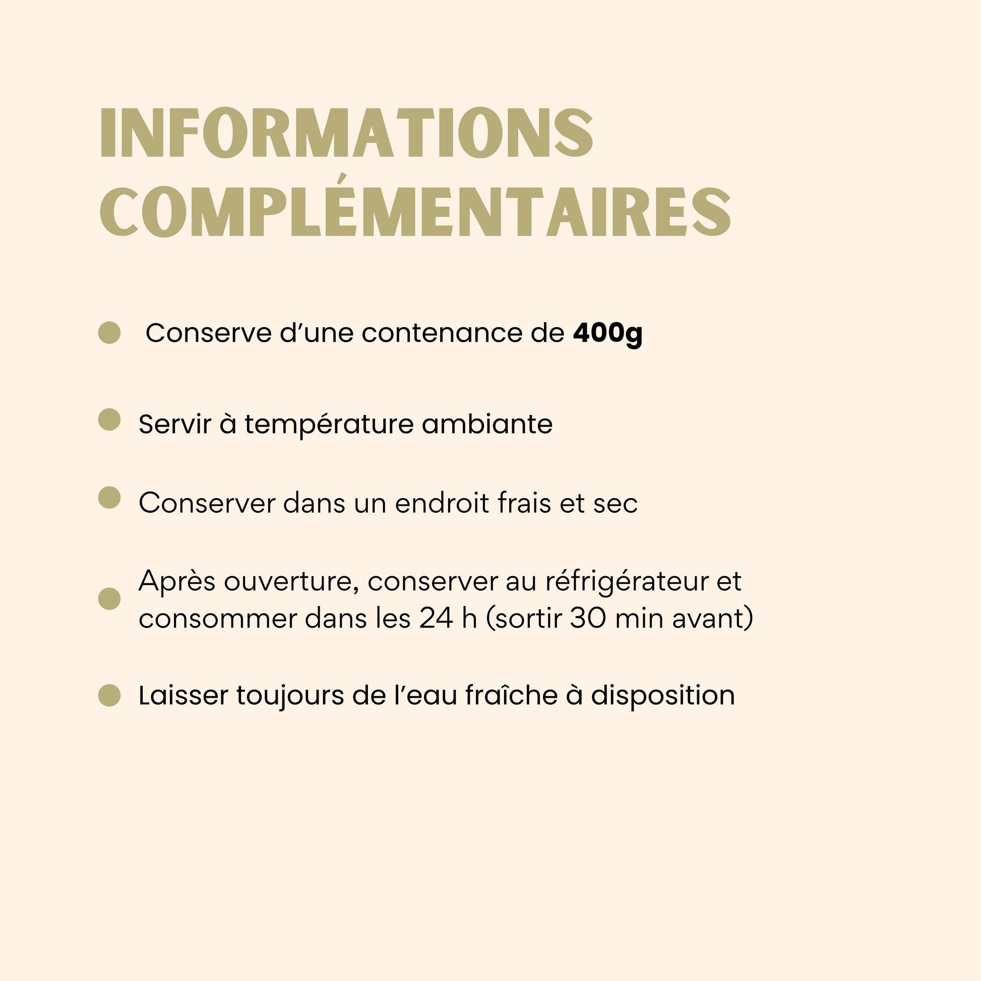 À base de canard (25 %), de poulet (25 %) et de carottes (8 %), cette pâtée combine goût et bienfaits nutritionnels.