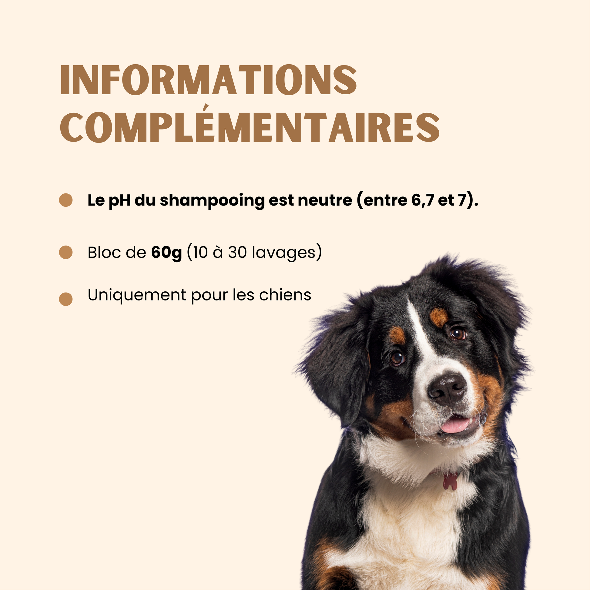 💡 Conseils : Ne pas laver le chien plus d’une fois par mois. Après usage, conserver le shampoing au sec pour éviter qu’il ne fonde.