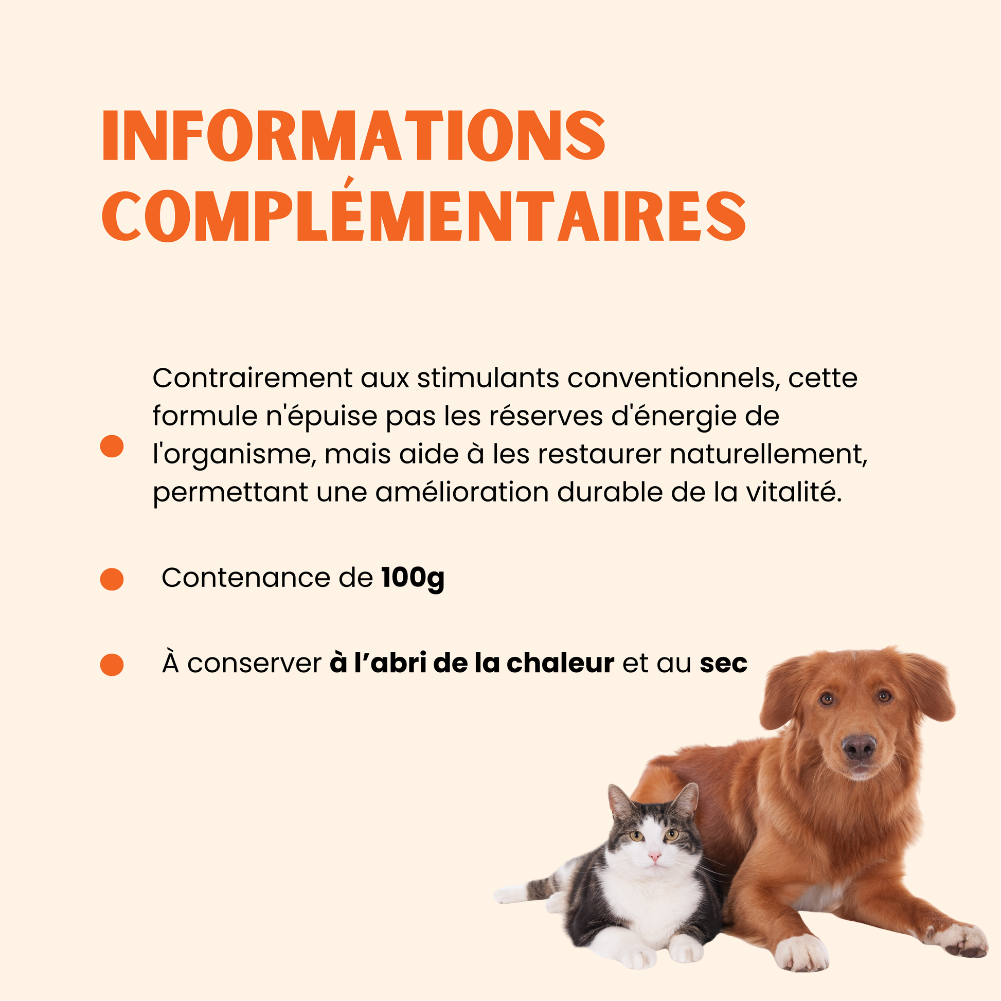 Redonne énergie et dynamisme à votre compagnon grâce à un complexe 100 % naturel.