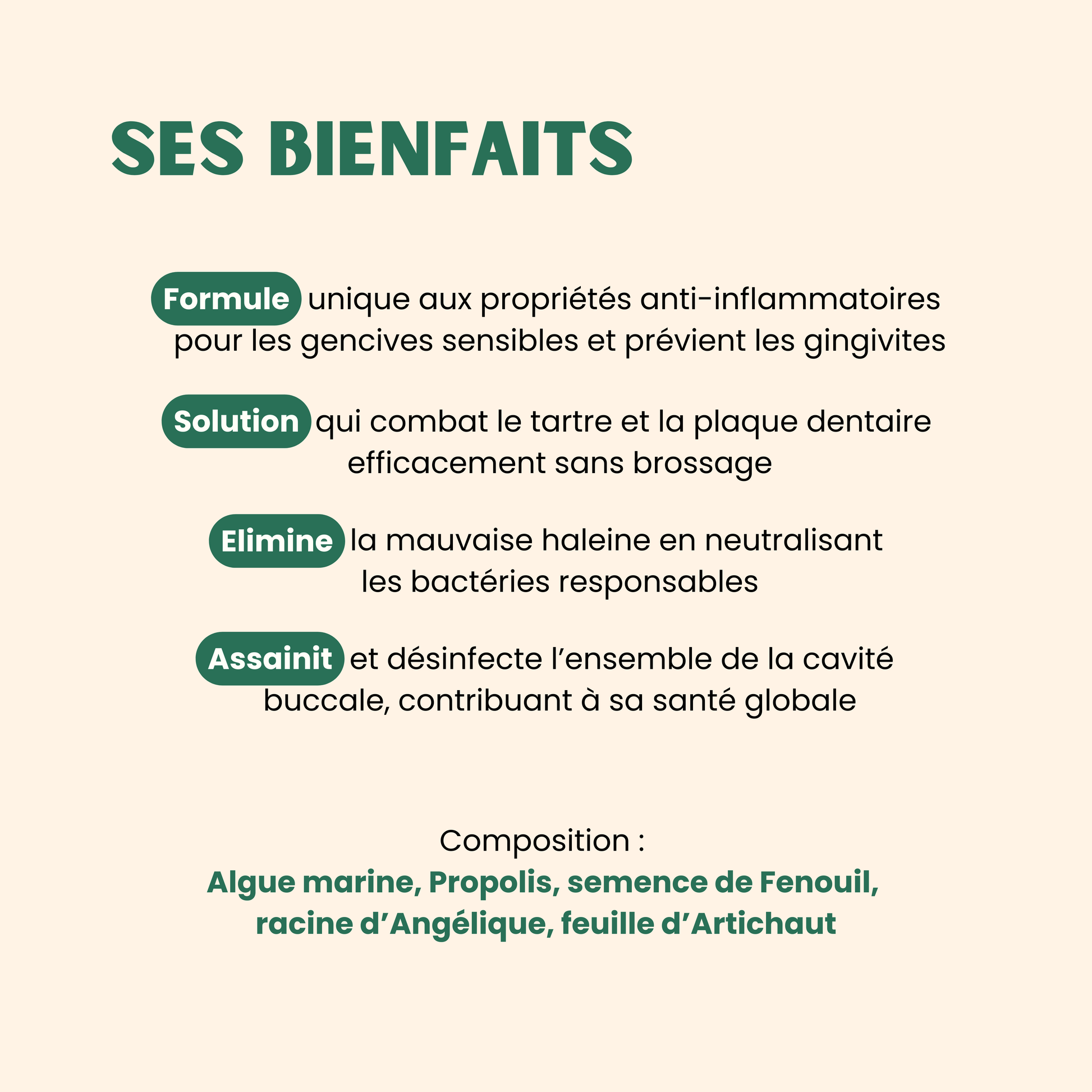 • 🌿 100 % naturel : algues marines, propolis, fenouil, angélique, artichaut