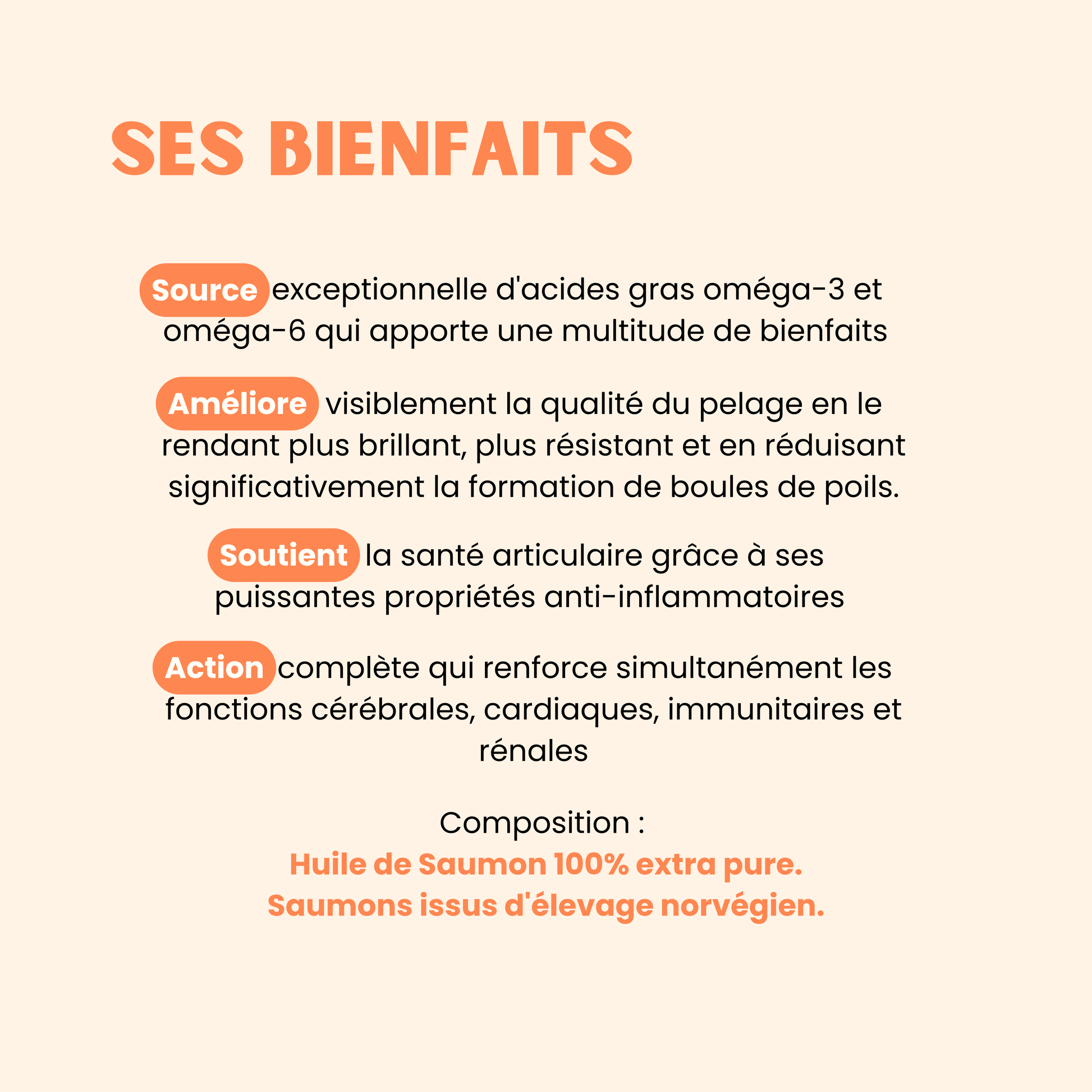🐟 Offrez à votre compagnon un poil de star, des articulations souples et un cœur en pleine forme grâce à notre huile de saumon 100 % naturelle.