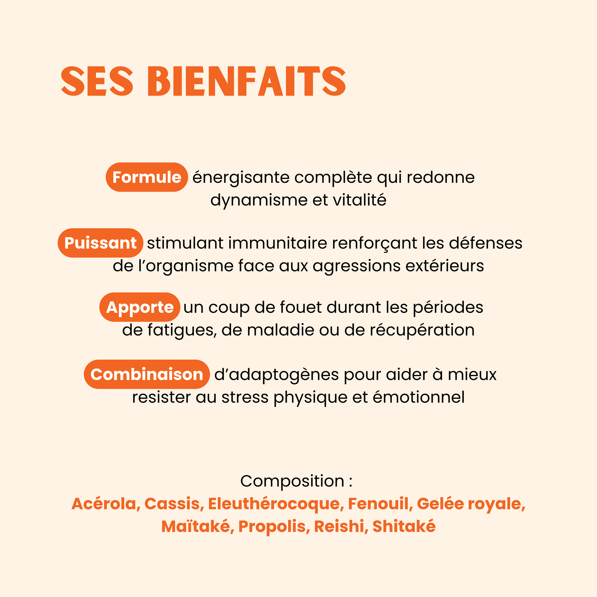 💪 Lutte contre la fatigue et renforce les défenses naturelles.